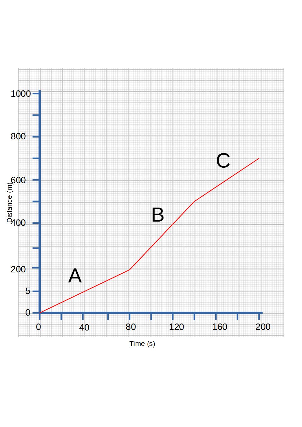 • The cyclist travels a distance of 200 m in 80 seconds. They then cycled a distance of 300 m in 60 seconds. Finally they cycled a distance of 200m in 60 seconds.