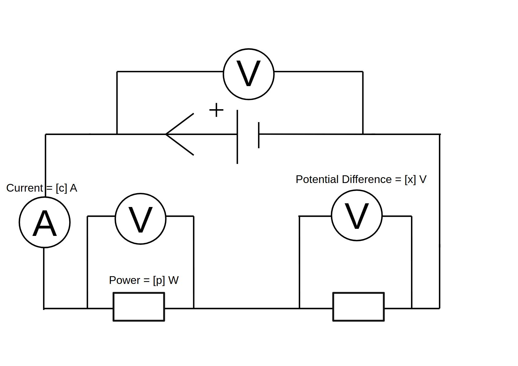 | First | First | Last | Results | Question Image | Where [c] has a current of | Where [x] has a potential difference of | Where [p] has a power of | 7a) Calculate the potential difference across the left resistor in the circuit above? | Correct Answer | Round Answer | Results | Show your workings: | 7b) From your answer in part a, determine the potential difference across the cell? | Correct Answer | Round Answer | Results | Show your workings: |